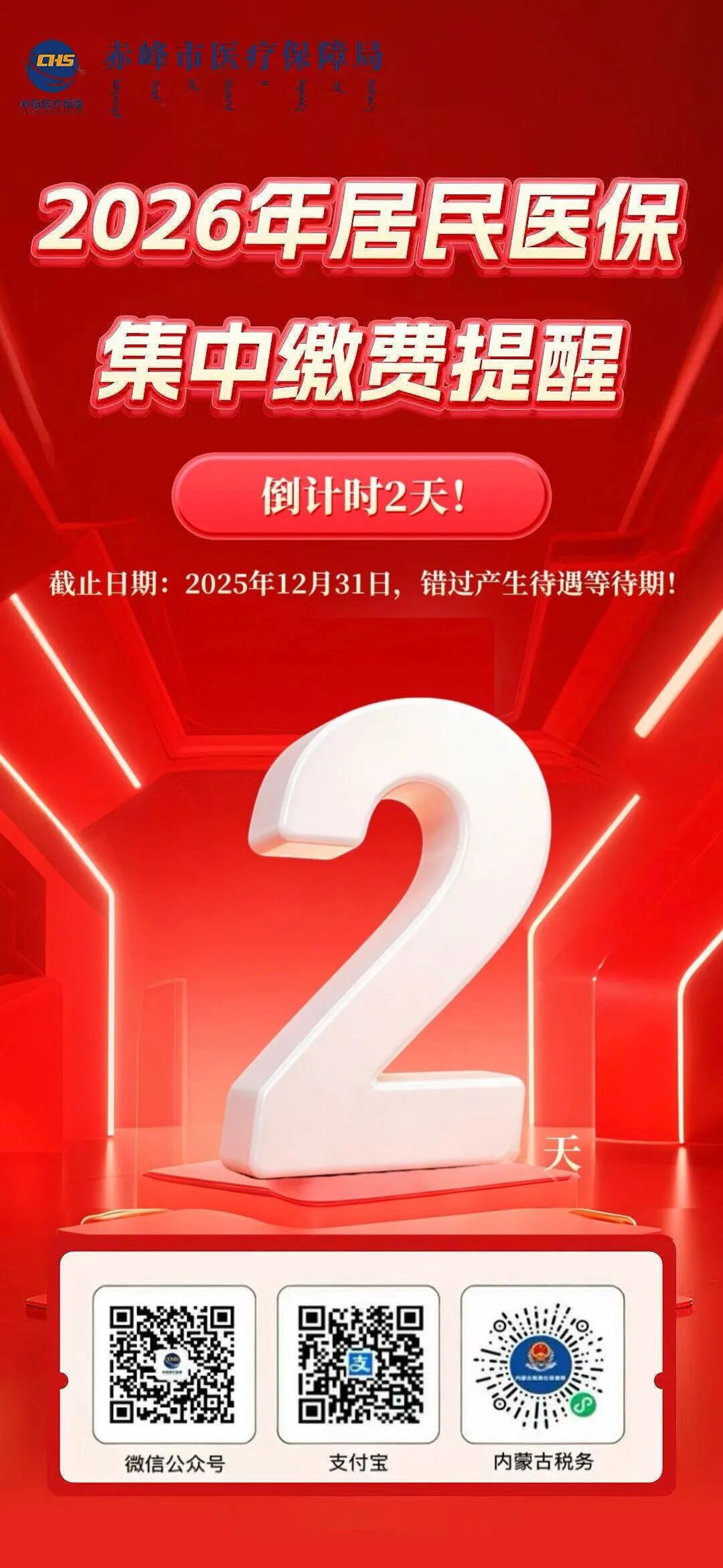 【缴费提醒】2026年居民医保集中缴费倒计时2天