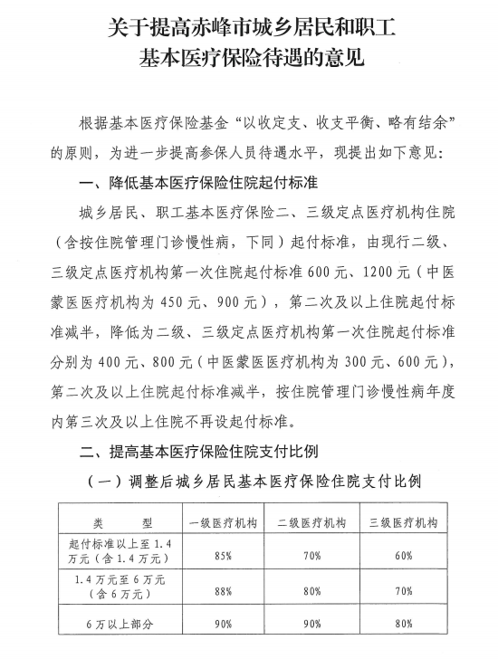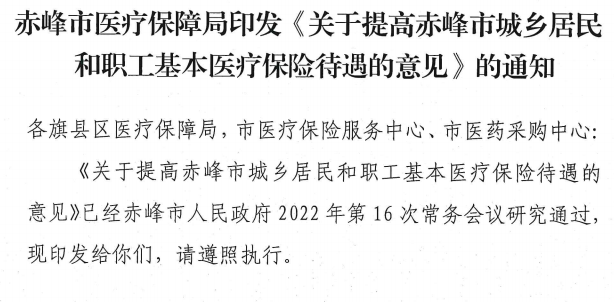 赤峰市医疗保障局印发《关于提高赤峰市城乡居民和职工基本医疗保险待遇的意见》的通知
