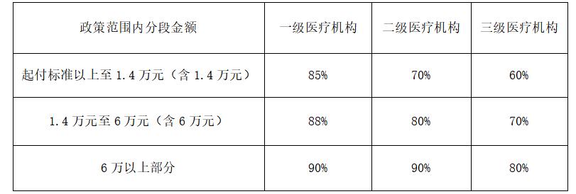 第二十条 基本医疗保险基金设置起付标准和年度最高支付限额。参保居民一个年度内首次在自治区内一、二、三级定点医疗机构住院,起付标准分别为200元、600元、1000元,第二次及以上住院起付标准减半。一个自然年度内,城乡居民基本医疗保险基金最高实际支付限额为12万元。具体支付比例为: