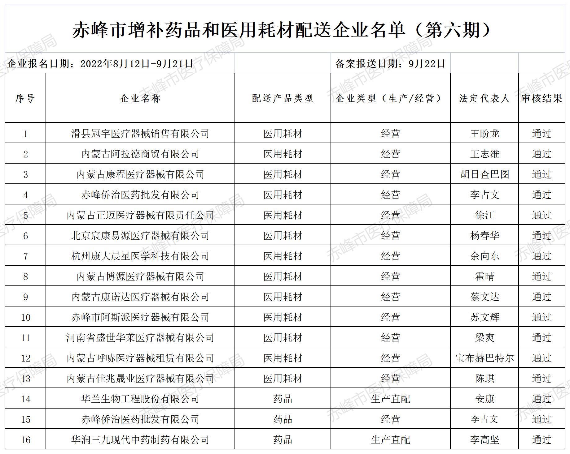 赤峰市增补药品和医用耗材配送企业名单(第六期)