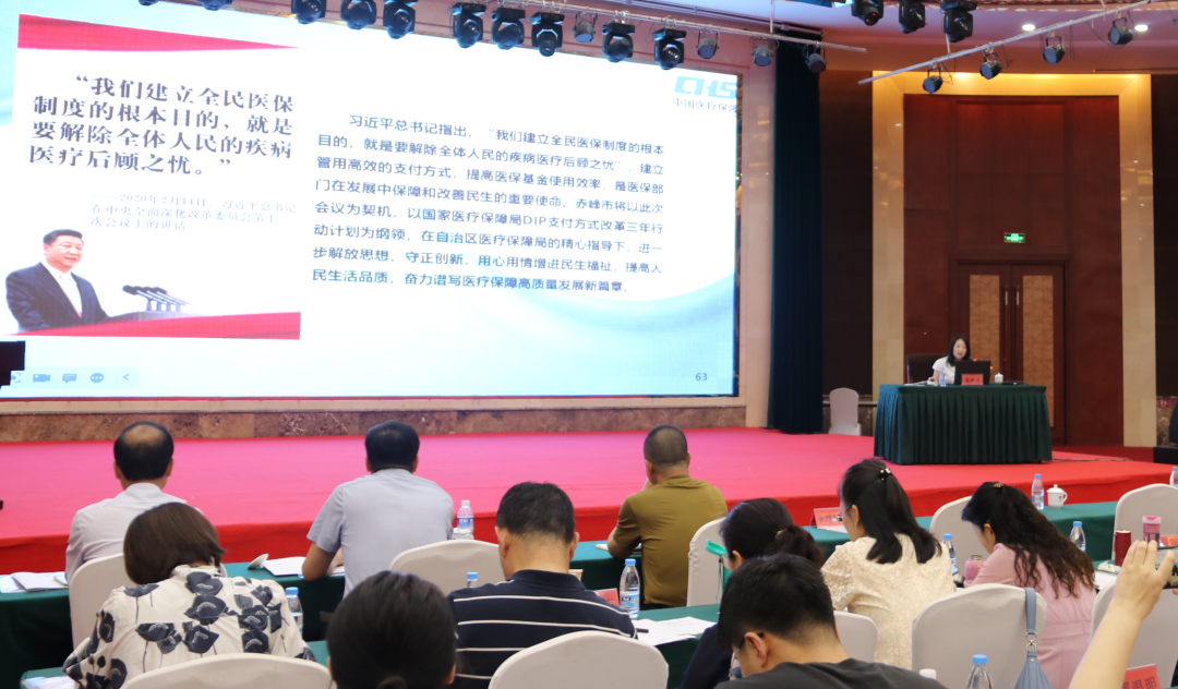 内蒙古自治区医疗保险服务中心副主任张亮存,上海分值医学科技公司工程师及有关专家,全区各盟市医疗保障局有关领导、医药服务管理科负责人,各统筹区医保经办机构有关领导,各盟市三级医疗机构有关领导,赤峰市各旗县区医疗保障局局长、医保经办机构主要负责人,赤峰市二级及以上定点医疗机构主要负责人及相关工作人员共400余人参加会议。