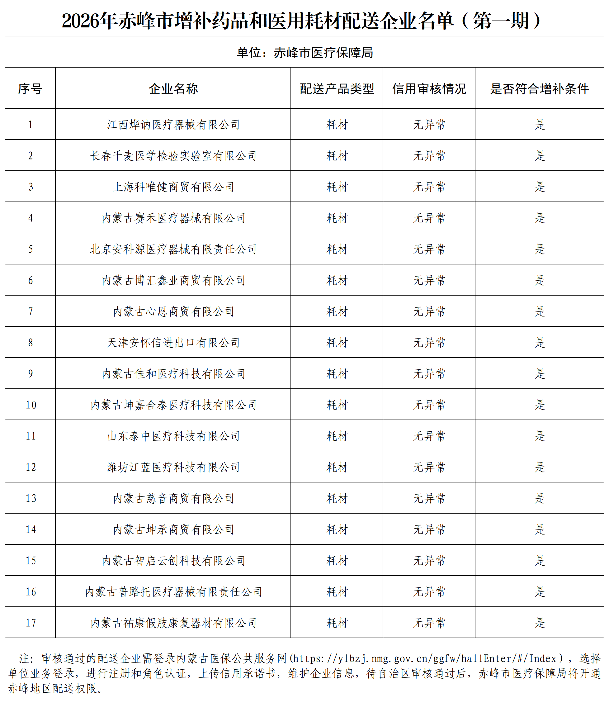 2026年赤峰市增补药品和医用耗材配送企业名单(第一期)
