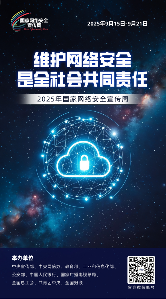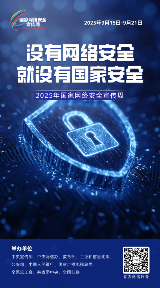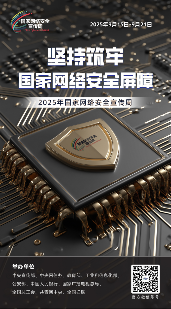 2025年国家网络安全宣传周将于9月15日——9月21日在全国范围内举行,主题海报抢先看!