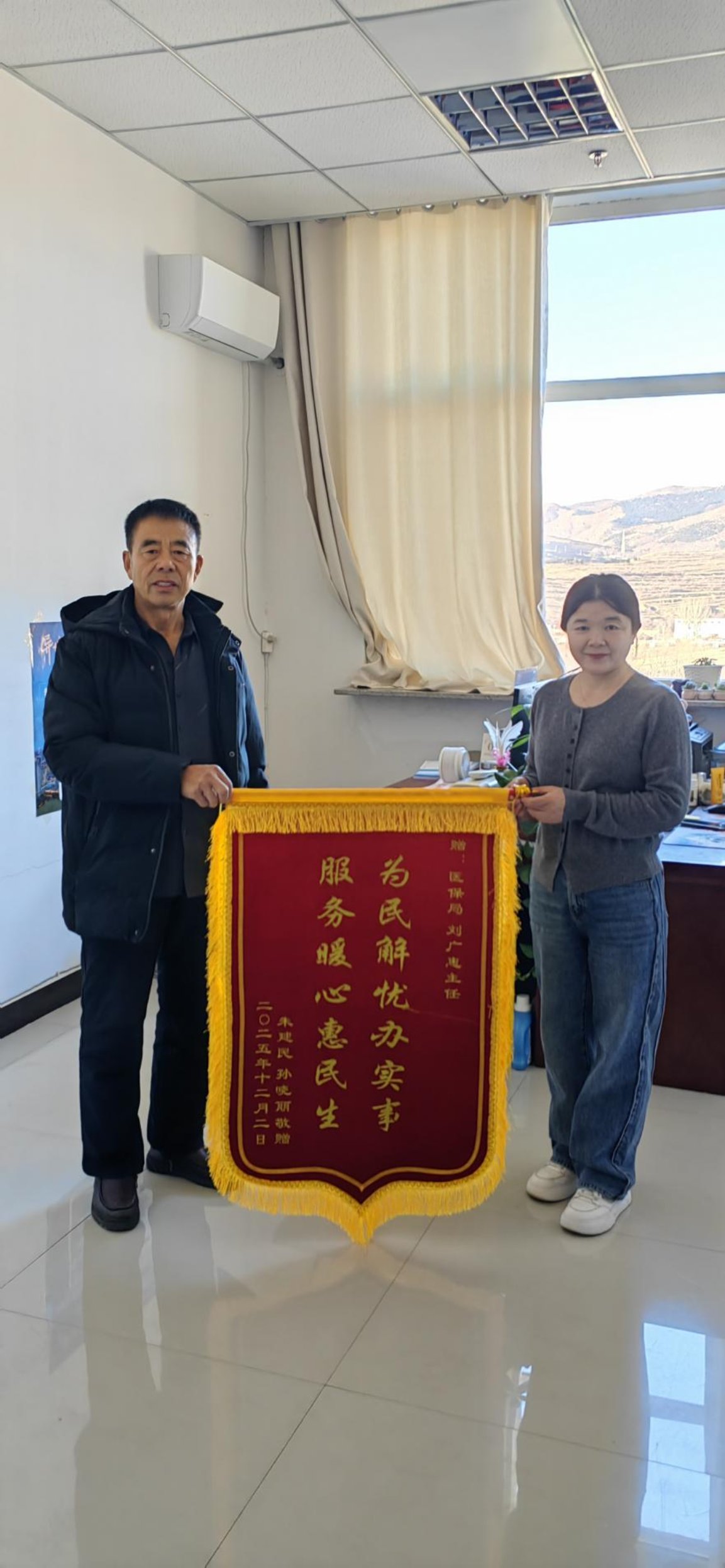 见到崔局后,他们拿出一个纸筒,小心翼翼的取出一面锦旗感慨道:太感谢医保了,感谢你们的服务,你们真热情......