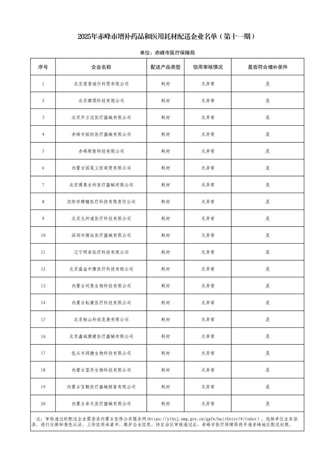 2025年赤峰市增补药品和医用耗材配送企业名单(第十一期)